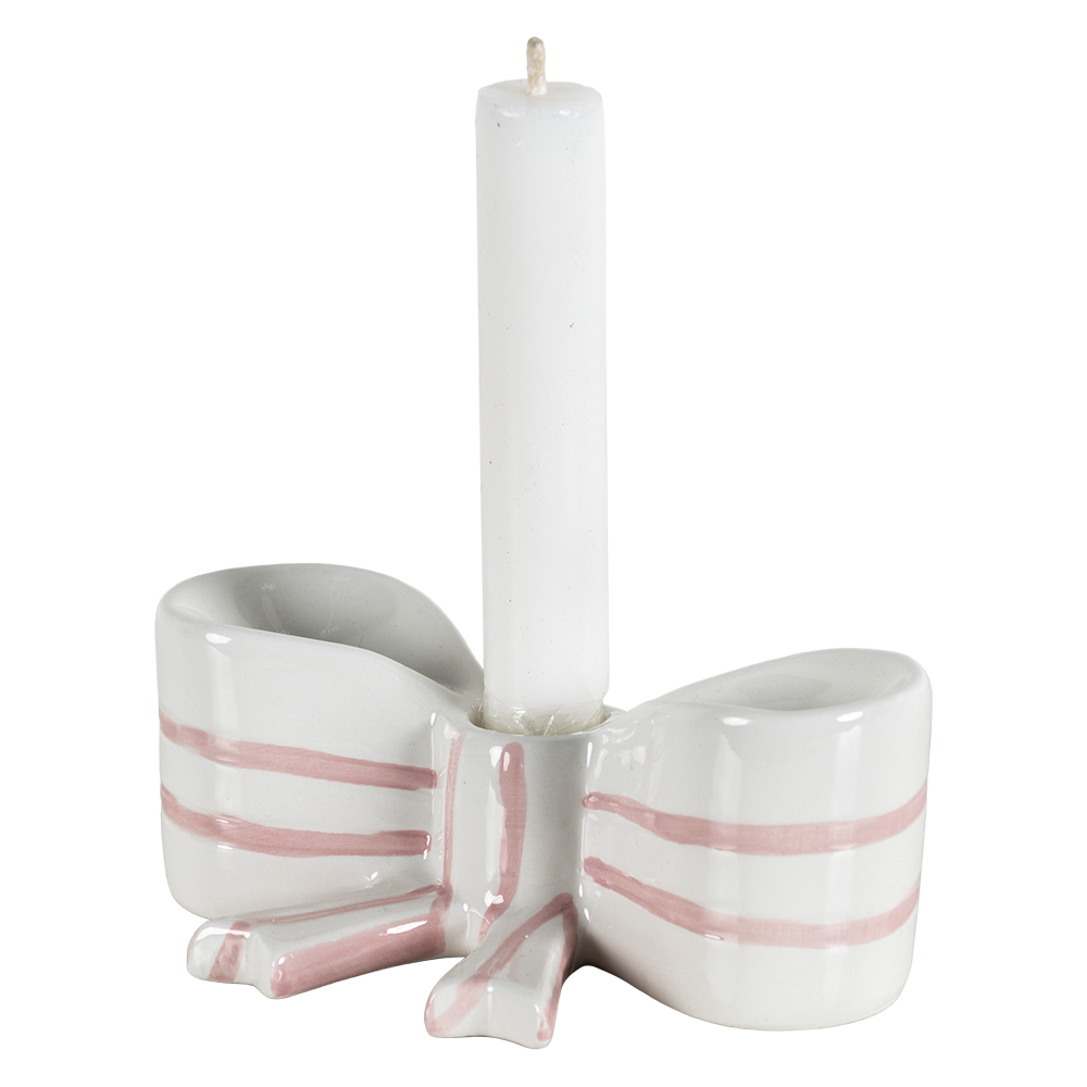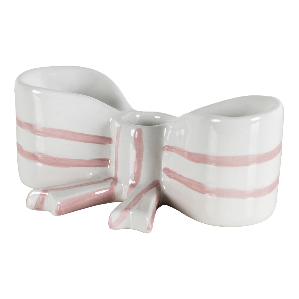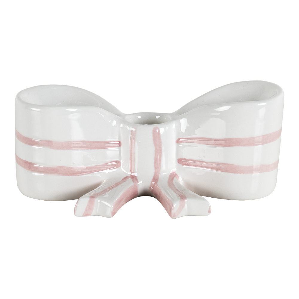 Portavelas Bloom en color blanco de 15 cm de largo x 7.4 cm de ancho x 6 cm de alto, fabricado en cerámica.
