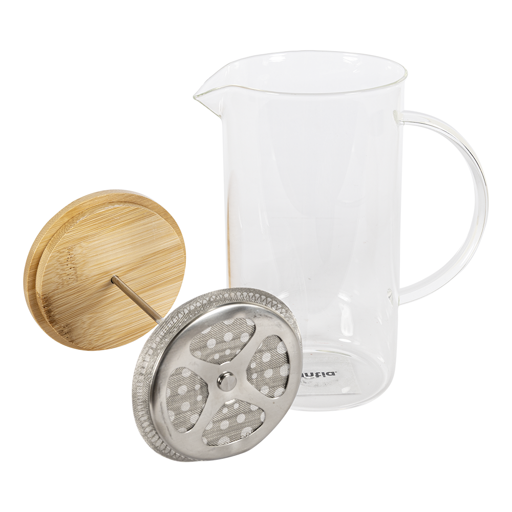 Prensa Francesa Metz 1L en color plata de 12.5 cm de largo x 11 cm de ancho x 21 cm alto, fabricada en Acero Inoxidable.