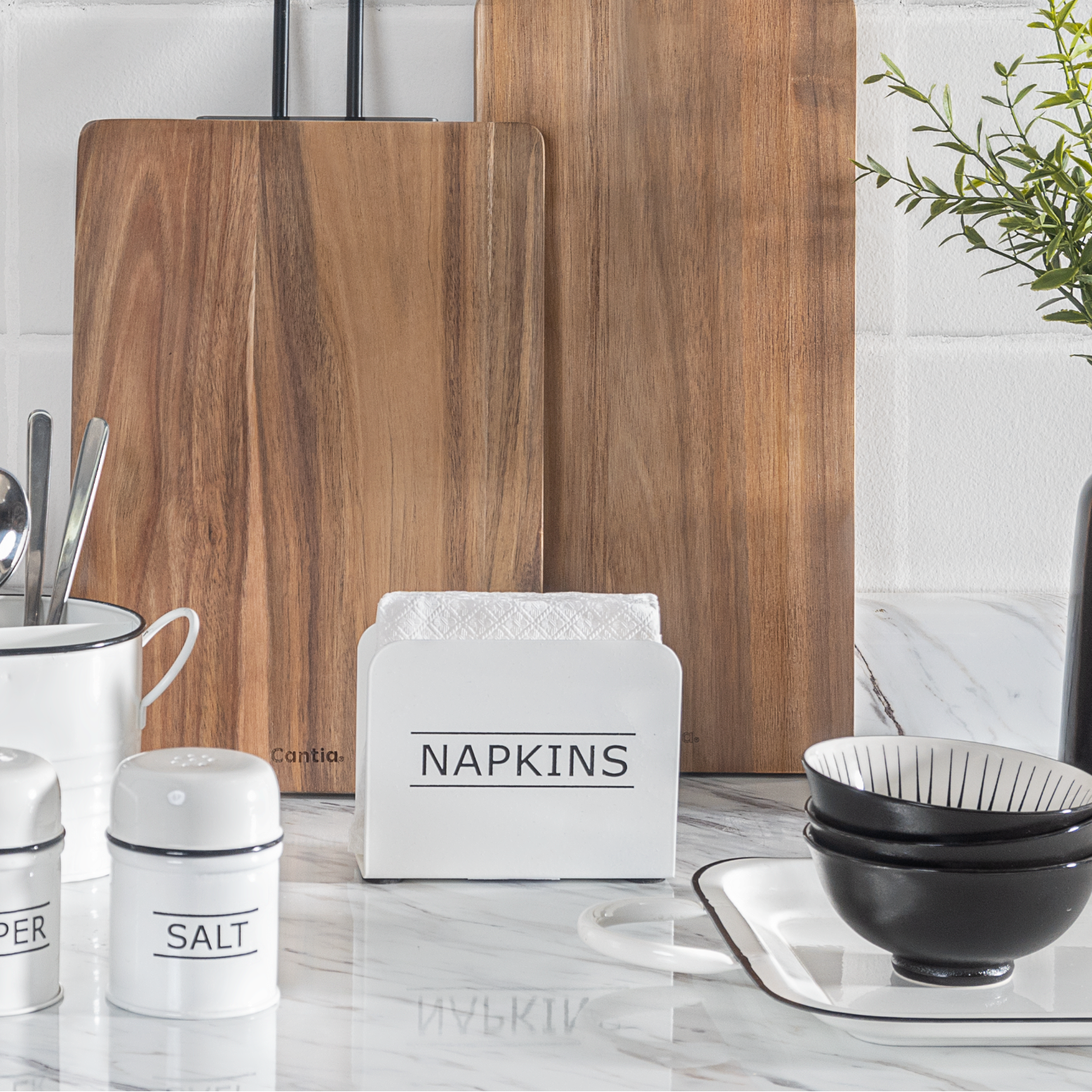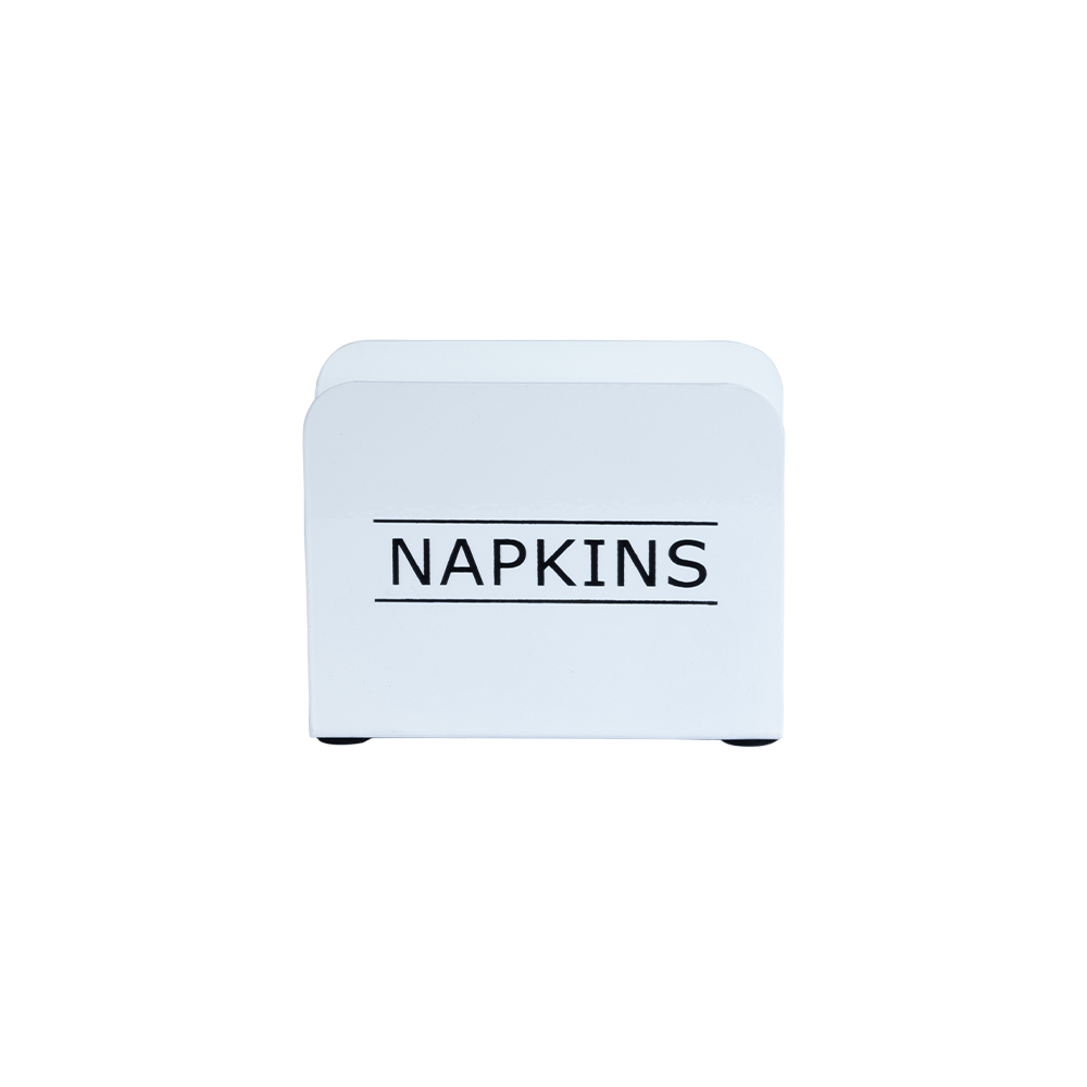 Servilletero Vintage color blanco de 14 cm de largo x 14 cm de ancho x 11.5 cm de alto, fabricado en metal galvanizado.