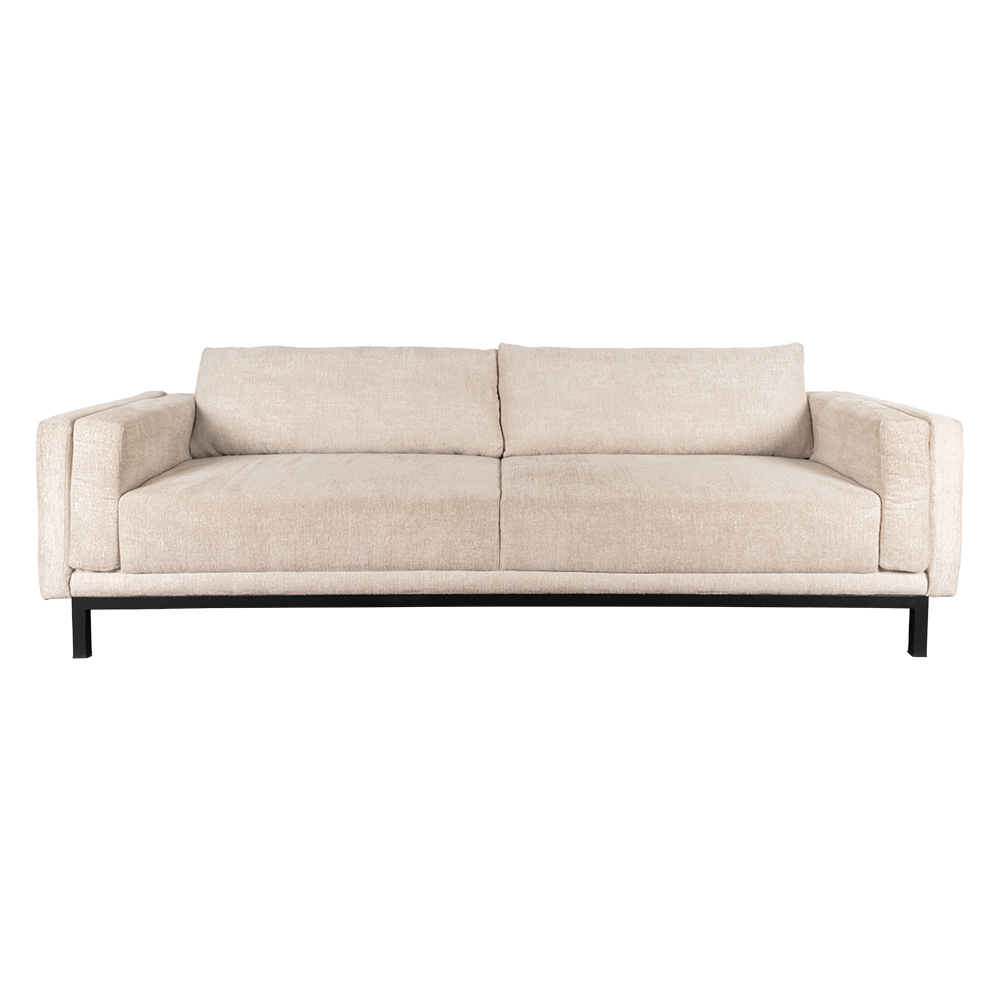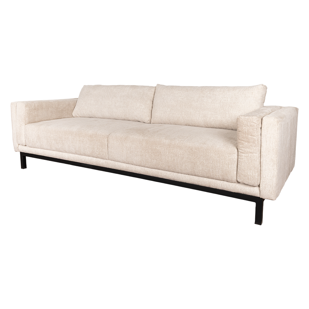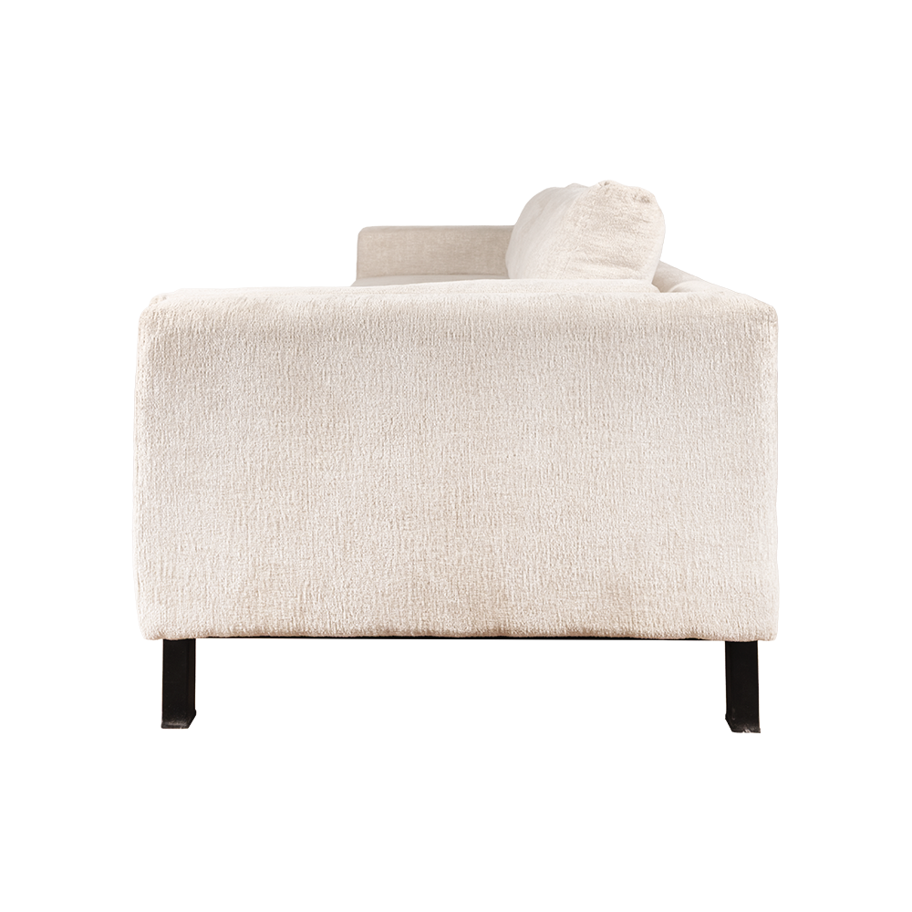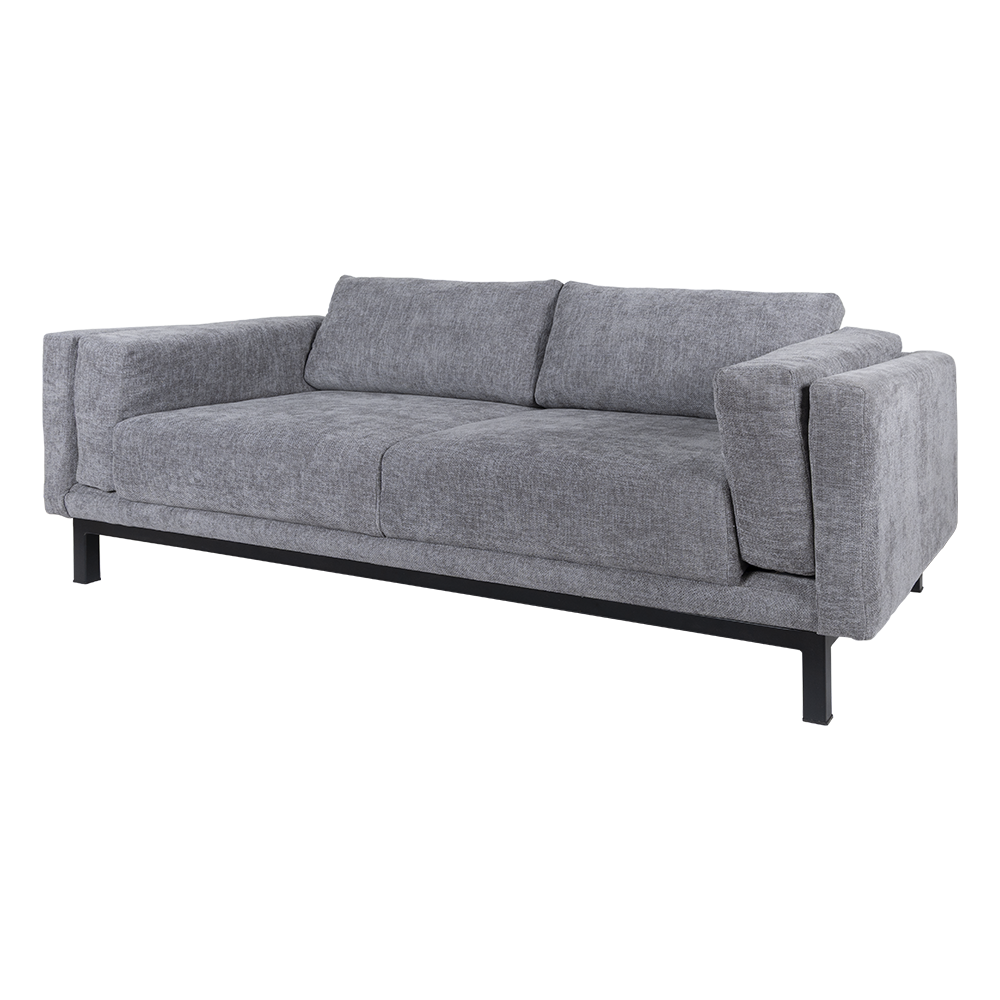 Sofá Inari diseñado en una medida de 252 cm de largo x 85 x 70 cm, fabricado en metal y tela canasta.