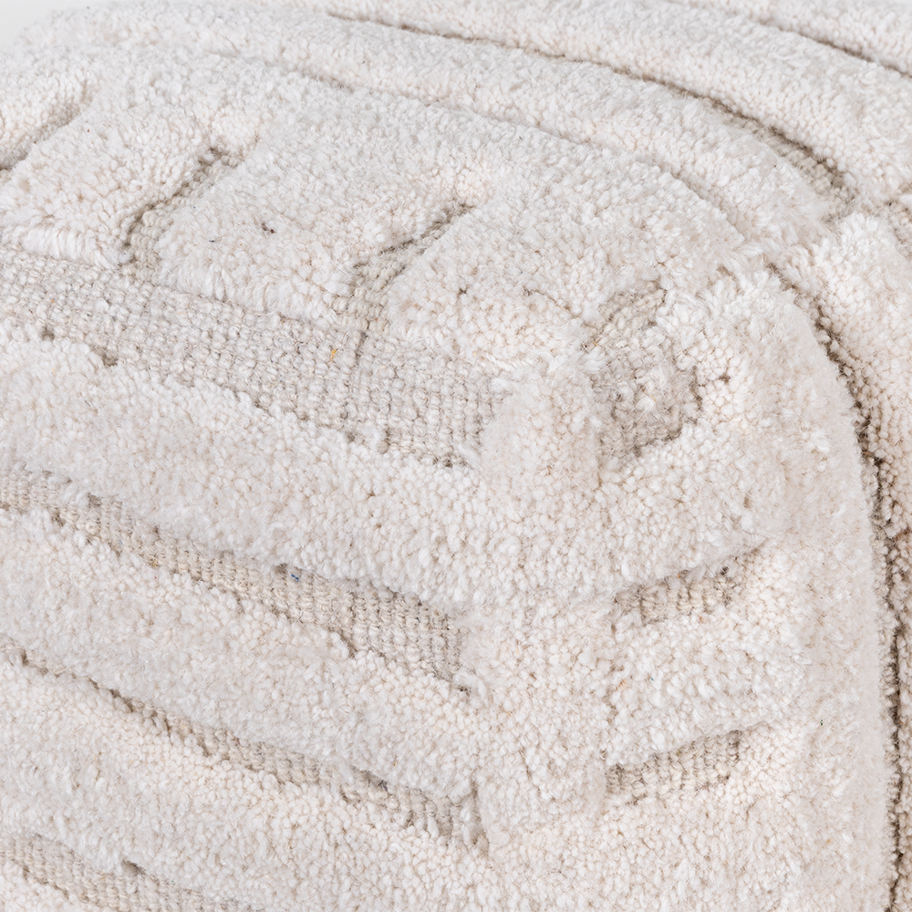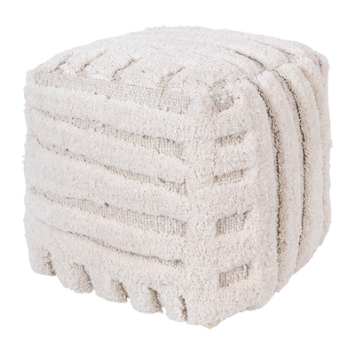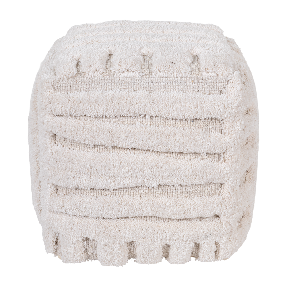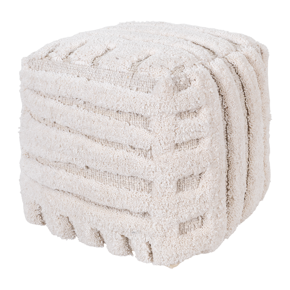 Taburete Tharad color beige, fabricado en lana y poliestireno.
